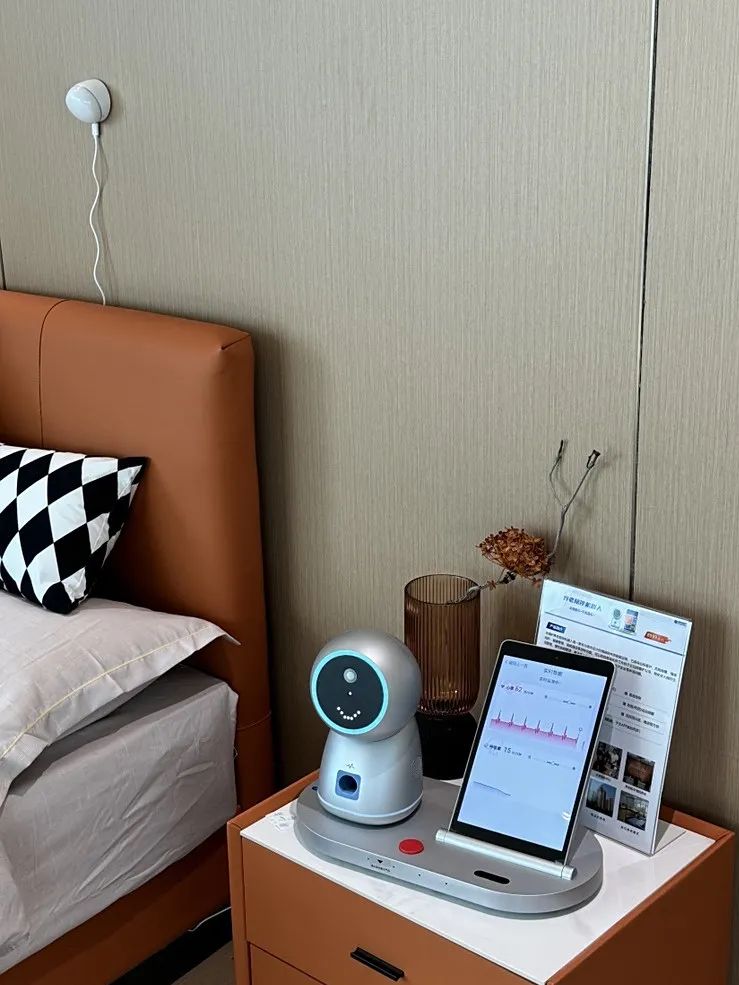在浴室、卧室等隐私场景下,机器人还可搭配跌倒监测仪及无感睡眠监测仪实时捕捉老人姿态和生理数据,若检测到跌倒或突发晕厥,系统会在20秒内自动报警并通过手机APP通知家属,有效破解隐私场景的安全监测难题。